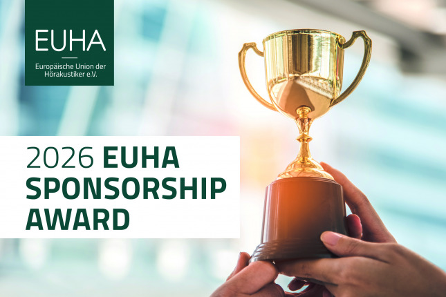 The 2026 EUHA Sponsorship Award ceremony will be held on 14 October 2026 as part of the 70th International Congress of Hearing Aid Acousticians in Hannover. Awardees will accept the awards in person.
