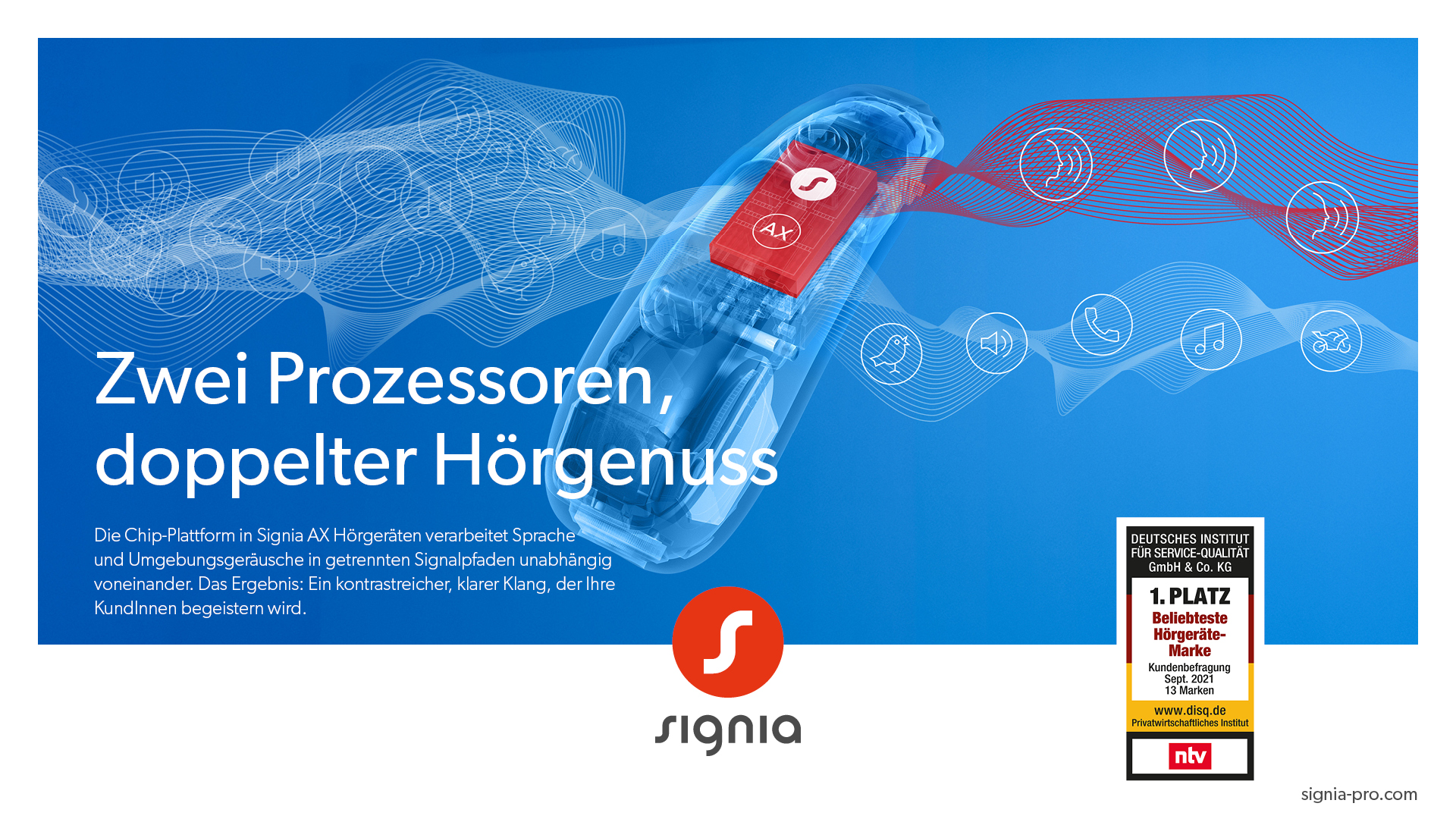 Dabei blickt Signia mit Sitz in Erlangen auf 140 Jahre Erfahrung in der Entwicklung von innovativen Hörgerätetechnologien und Spitzenaudiologie für fast alle Hörverluste zurück.